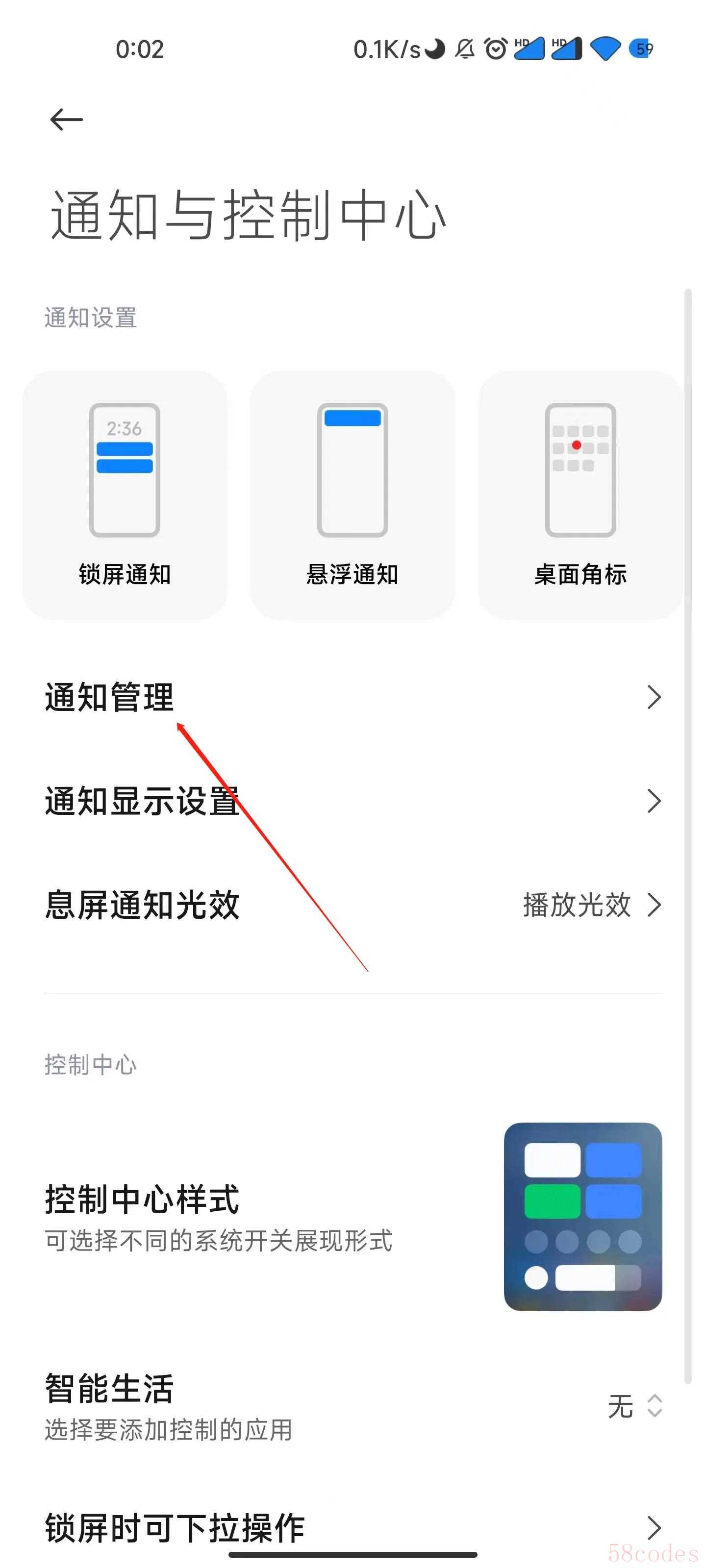 选择通知管理。