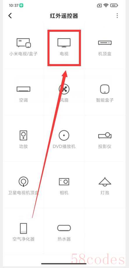 3. "选择设备类型:" 进入后,你可以选择要控制的设备类型,例如:电视、机顶盒、空调、电视柜等等。