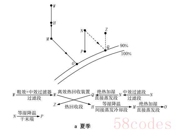 回风经过绝热加湿降温至 Q 点,与室外新风换热升温至 Z 点排至室外;