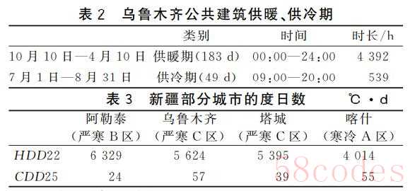 以乌鲁木齐为例,其冬季供暖期时长约为夏季供冷期时长的8.15倍,如表2所示。