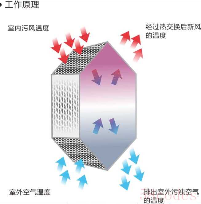"原理:" 当你把寒冷的室外空气引入室内时,如果直接送入,会明显降低室内温度。带有热回收功能的新风系统,在