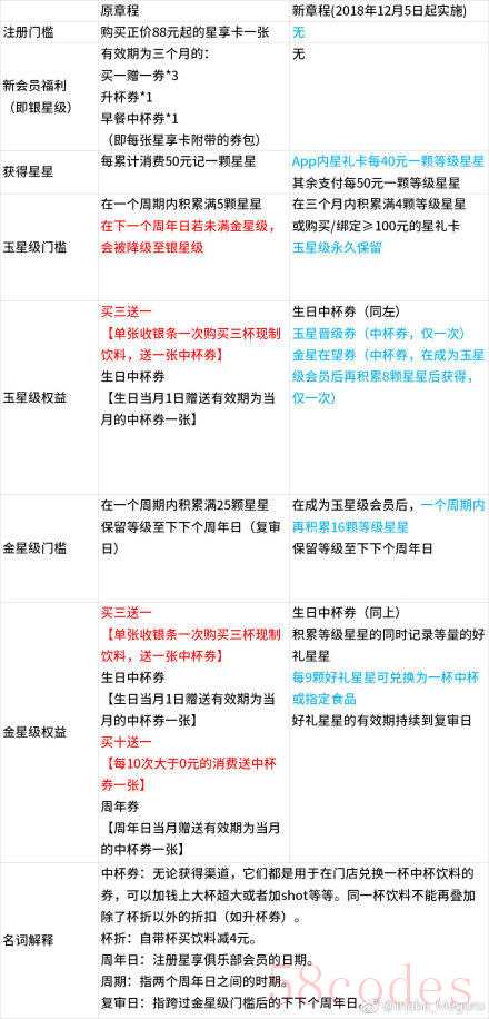 "获取速度减慢":过去,购买饮品通常能获得3-4星,而购买食品则获得1-2星。新规则下,购买饮品普遍只能获得1星,购买食品则没有星级积分。这意味着积累星级积分的速度大大减慢了。