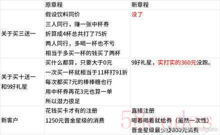 "兑换比例可能降低":虽然兑换咖啡的“星级”数量可能没有变,但由于获取星级的难度增加,达到兑换门槛所需的时间和消费可能反而增加了。