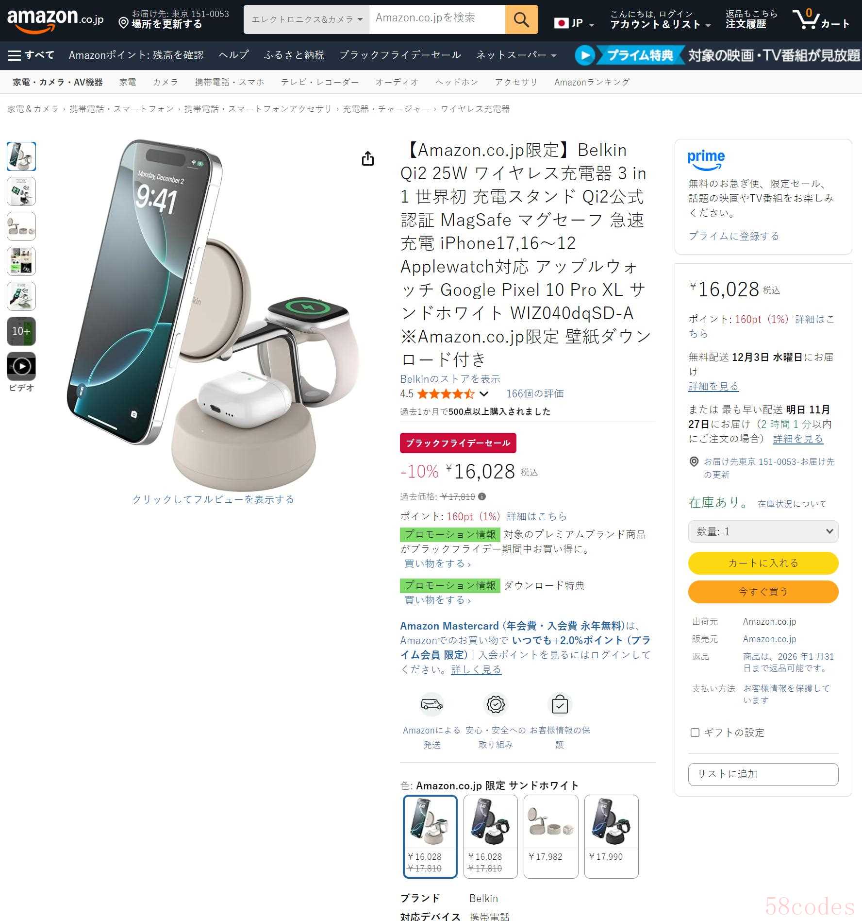 榜单第十是Belkin Qi2 25W三合一磁吸无线充,通过WPC无线充电联盟Qi2.2认证,满足iPhone 16、17系列25W磁吸无线充电,iPhone、Apple Watch、AirPods苹果三件套充电一个搞定。亚马逊用户评分4.5,评论数166条,月销量500个,售价16028日元。