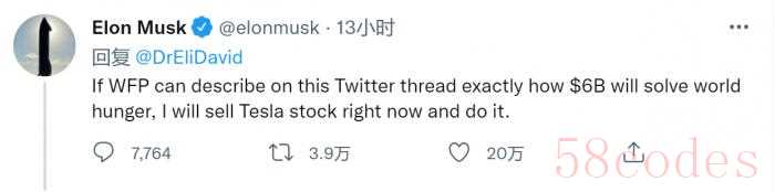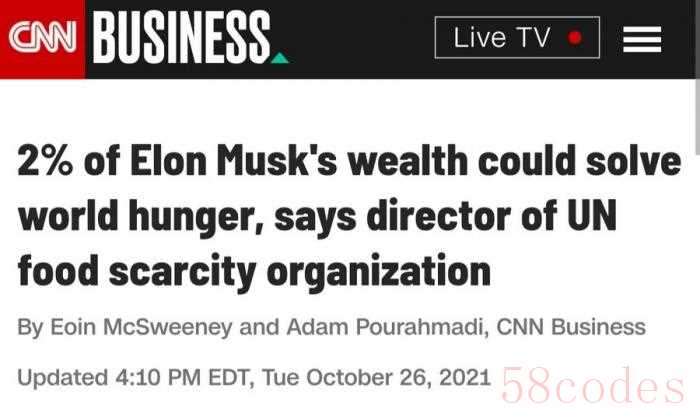 此前,WFP署长戴维·比斯利在参加访谈节目时呼吁马斯克、亚马逊创始人杰夫·贝佐斯站出来提供“一次性援助”来解决粮食危机。比斯利称,“只要60亿美元就能挽救全球4200万人的生命。”
