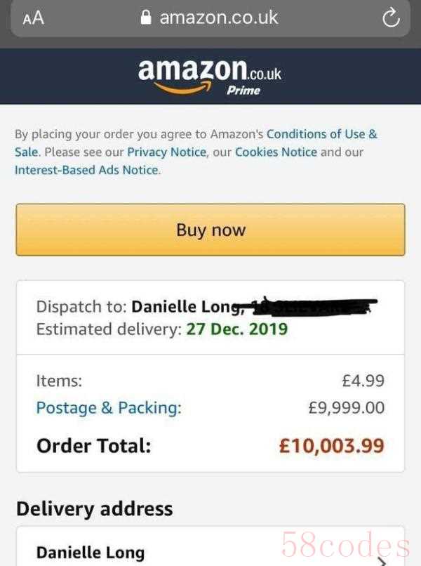 想要在物流高峰期快点拿到自己的圣诞礼物到底需要付出多大的代价?一个名为丹尼尔·朗的消费者给了我们一个令人瞠目结舌的答案:1万英镑(约合人民币9万元)! 据《镜报》12月23日报道,这位买家在亚马逊上买了一个价值4.99英镑(约合45人民币)的圣诞礼物,并且希望能在圣诞节之前收到它。 亚马逊答应为她提供“次日即达”的送货服务,但是价格是1万英镑。