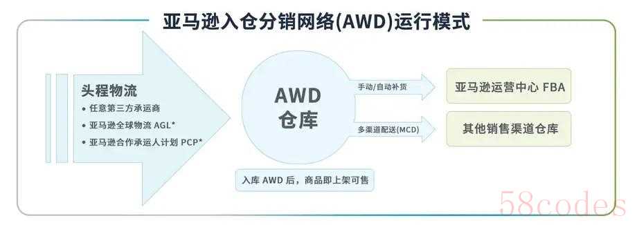 是一项仓储和分销的服务,卖家可以使用亚马逊全球物流(AGL)或第三方承运商,将货物运到AWD仓库。亚马逊会根据销量预测安排从AWD仓库到运营中心的补货。