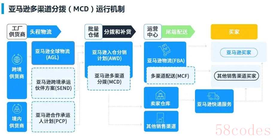 Multi-Channel Fulfillment,是由亚马逊供应链提供的一种第三方物流解决方案。MCF使不同行业的大中小企业都可以利用亚马逊全球配送网络的力量,随时随地通过各类销售或分销渠道为顾客提供服务。