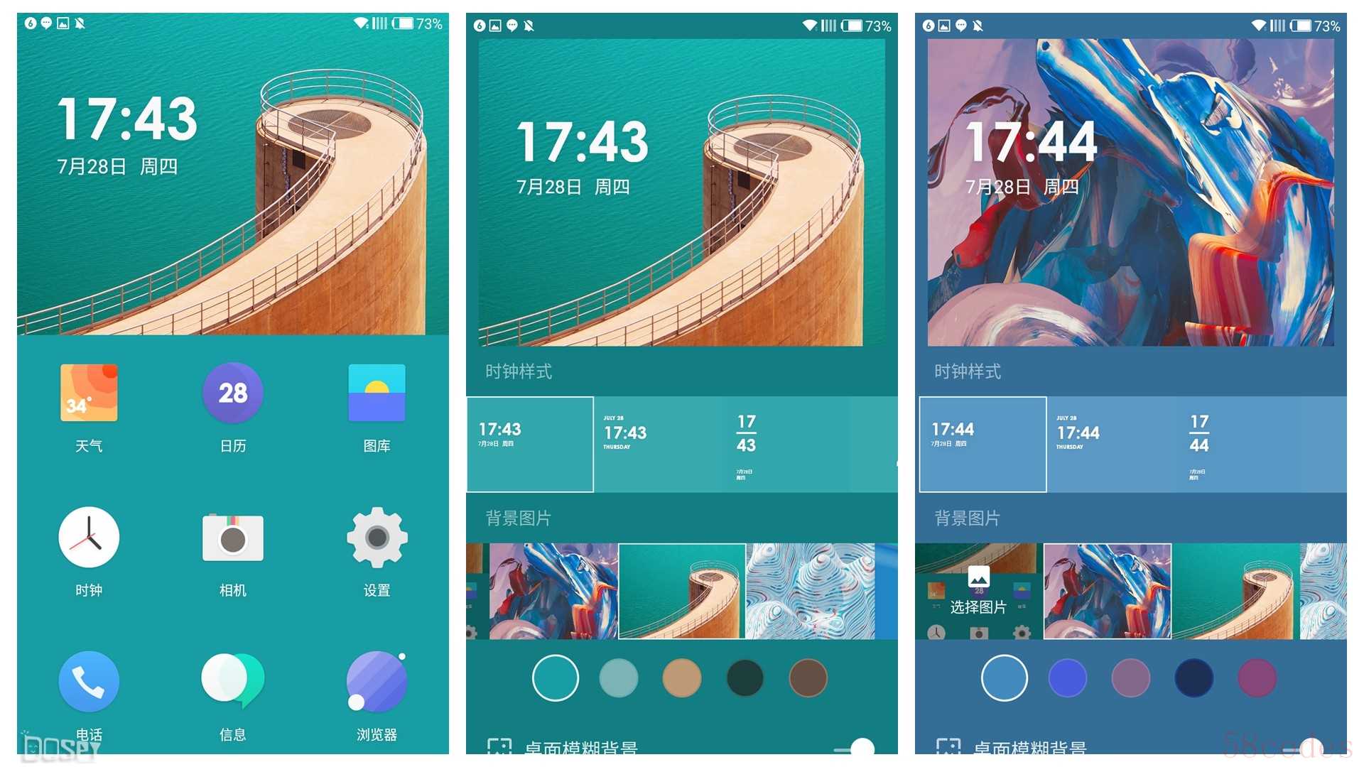 长按氢视窗,你可以设置时钟样式、选择背景图片、设置填充颜色和桌面背景模糊度。
