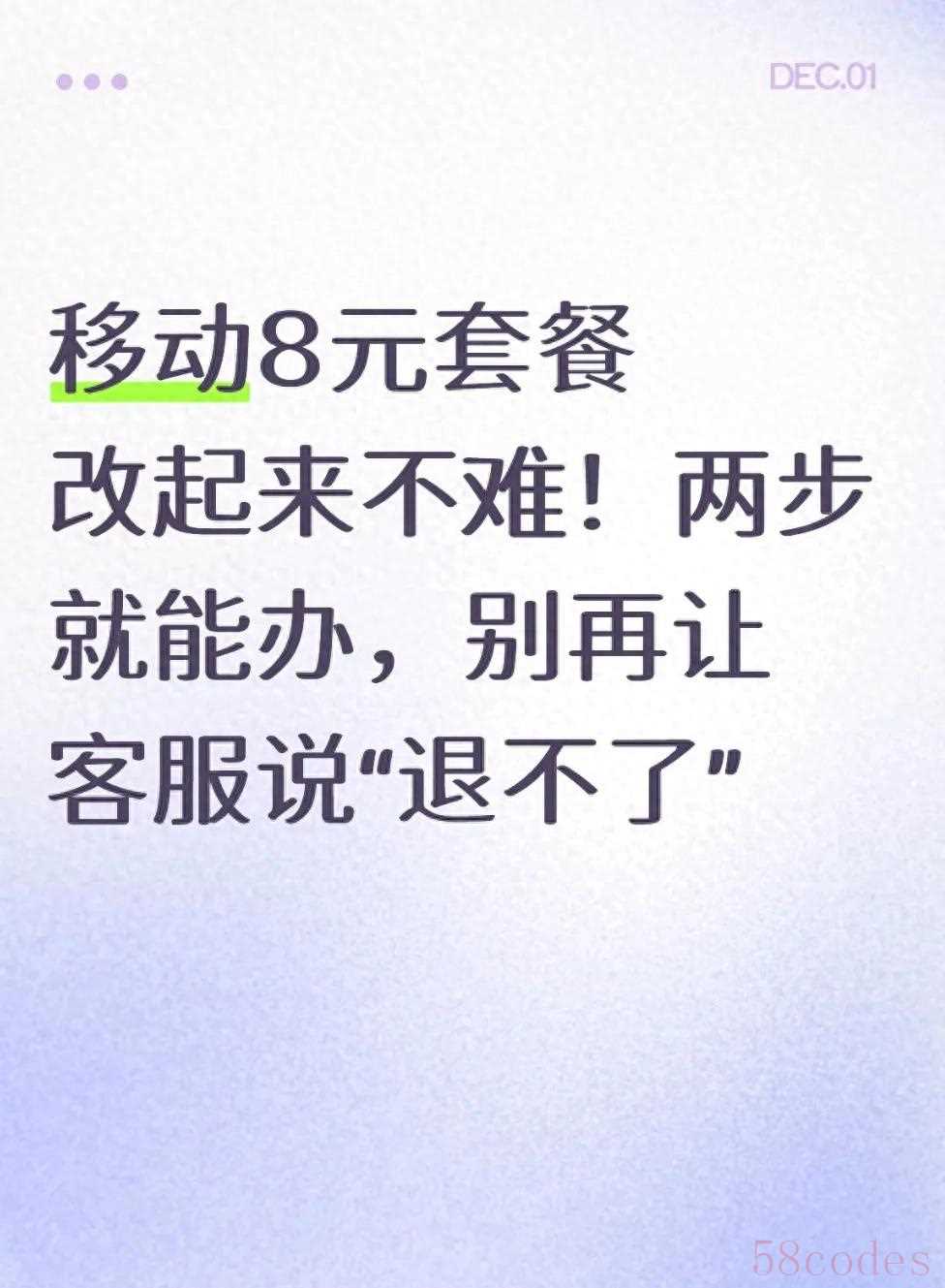 按照我给的步骤,小周当天就成功将58元套餐改成了8元版,算下来一年能省600元。其实像小周这样被“套路”的用户不在少数,很多人不知道,移动8元套餐不仅没下架,还能通过简单两步自主办理,完全不用看客服脸色。