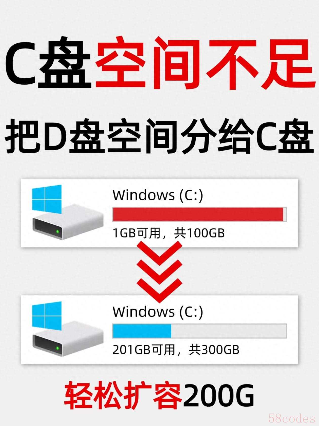 手把手7步操作:从D盘“挪”20GB给C盘
