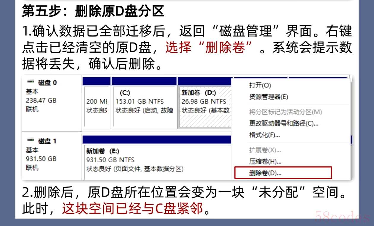 第五步:删除原D盘,打通“通道”