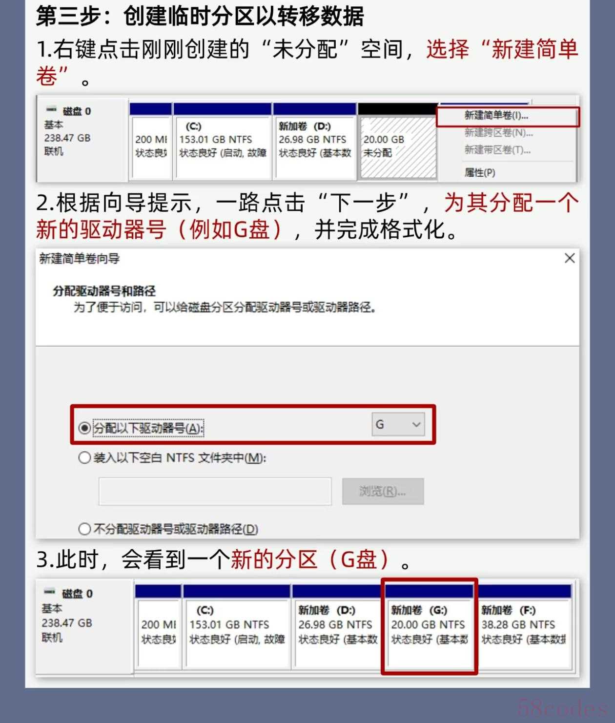 第三步:建个临时分区,暂存D盘数据