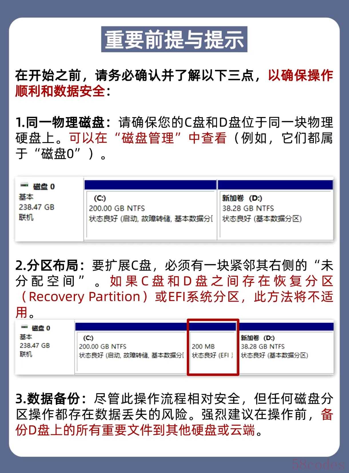 2. C盘和D盘必须紧邻:磁盘管理里,C盘右侧直接是D盘,中间没有带锁的“恢复分区”“系统保留分区”(这些分区不能动,隔着它们就像隔了堵墙,空间挪不过去)。