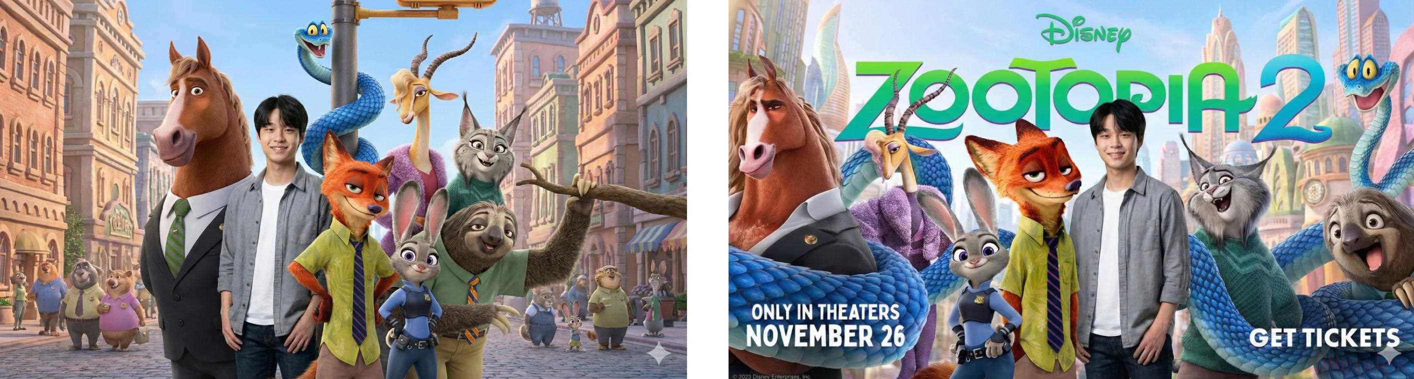 太棒了!《疯狂动物城2》大受欢迎,用 Nano Banana Pro 拍摄电影海报风合照分享朋友圈,绝对是吸睛利器!