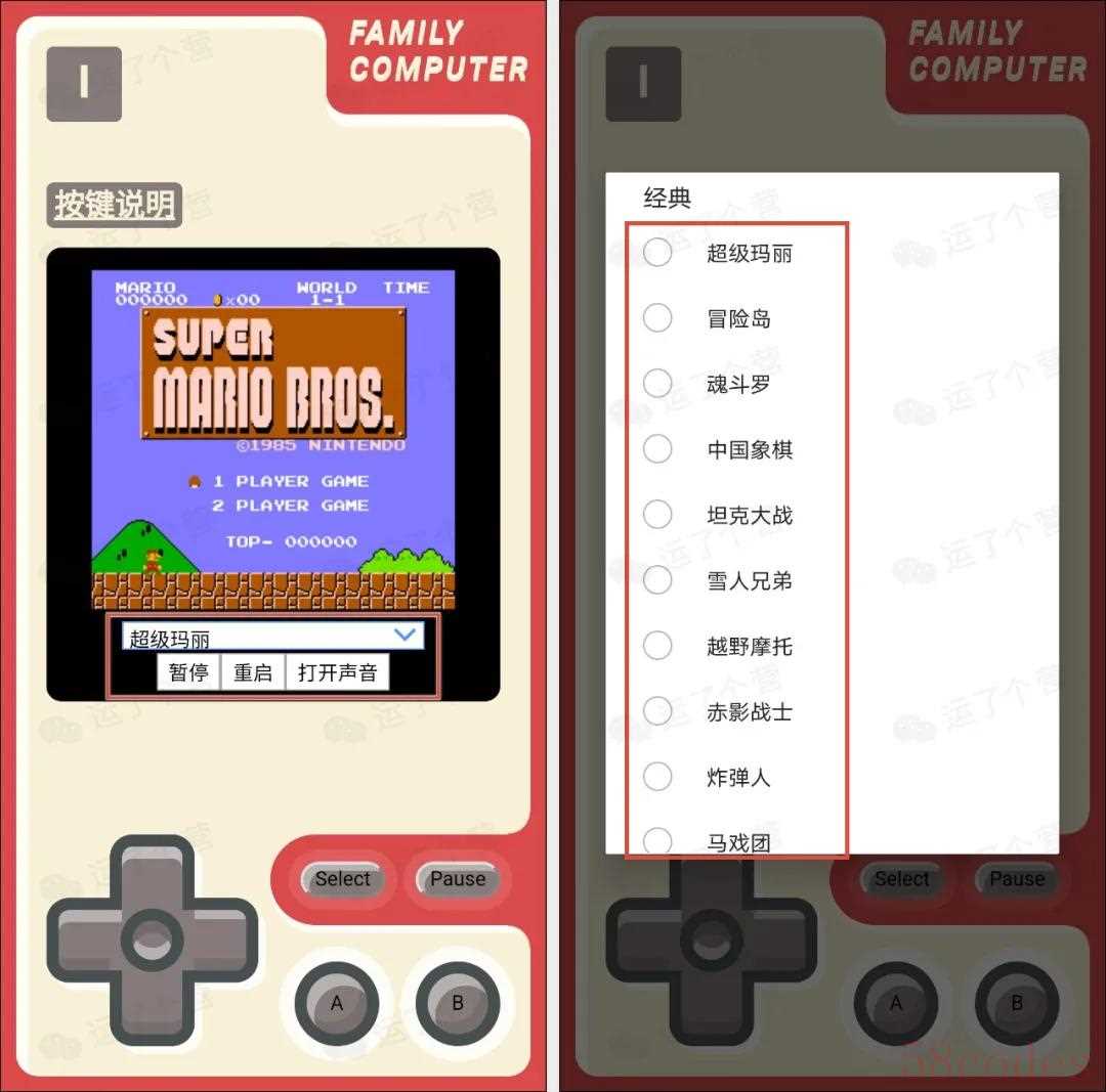 功能操作也十分简单,除了界面底部常规的方向键、选择键、启动键、功能键之外,还可以直接在小屏幕里点击选择游戏、暂停/重启游戏、开启/关闭声音等等。