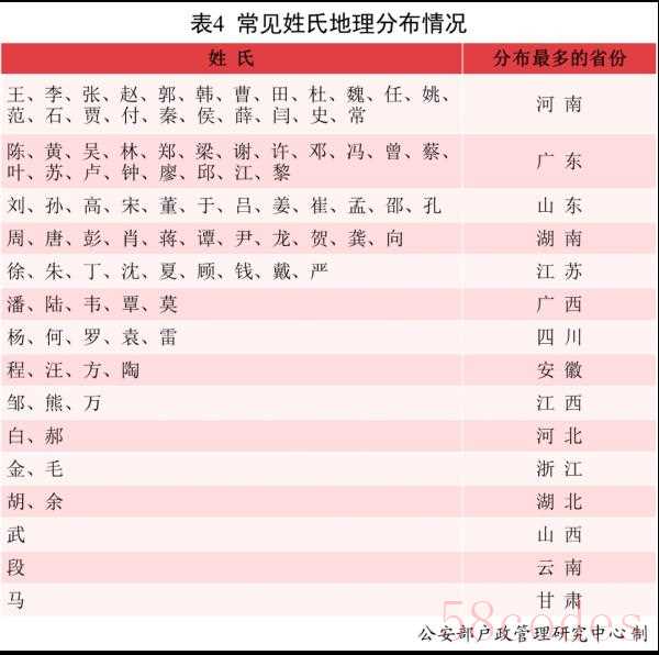 常见姓氏地理分布