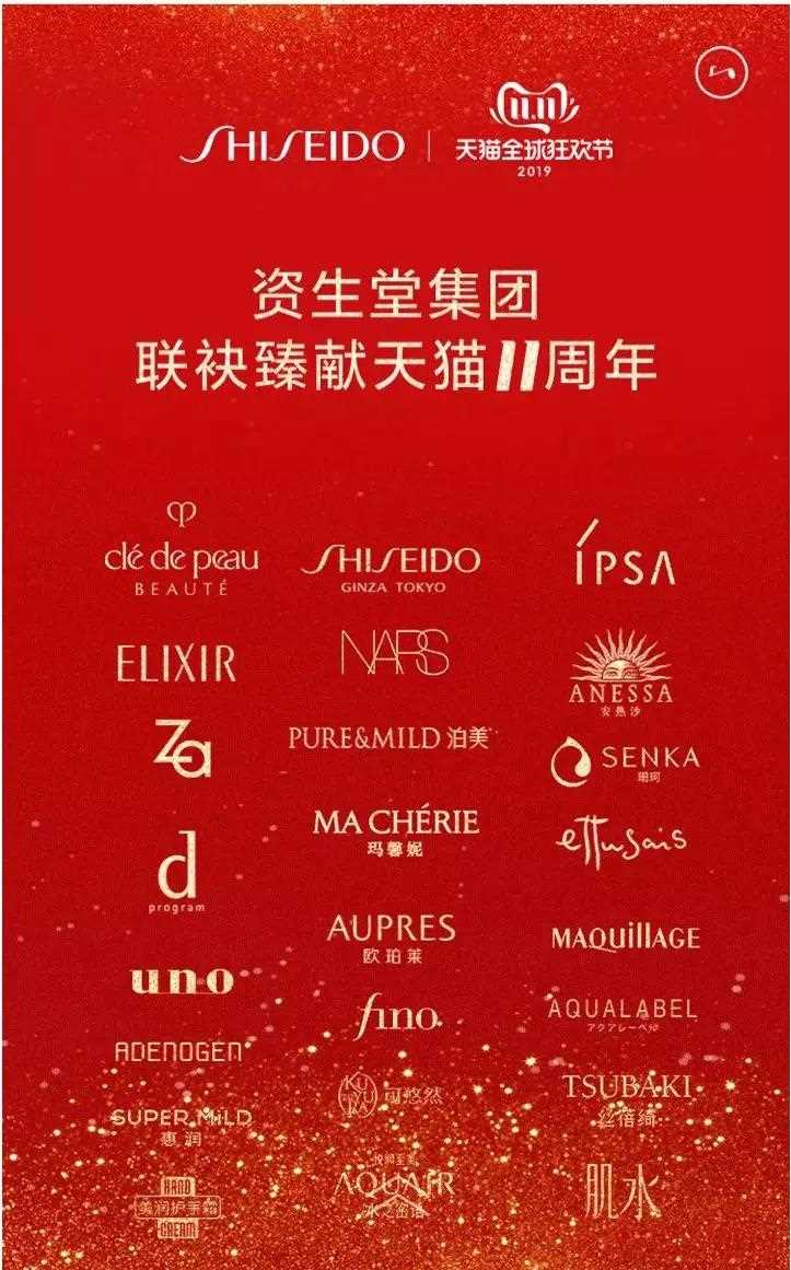 今年天猫双11,资生堂集团在天猫上总销量同比增长91%。这一天,资生堂集团天猫累计销售额逾11亿元,总销量超400万件。资生堂旗下共有24个品牌参与天猫双11,其中SHISEIDO资生堂、Clé de Peau Beauté肌肤之钥、ELIXIR怡丽丝尔、AUPRES 欧珀莱、IPSA茵芙莎五大品牌跻身天猫双十一“亿元俱乐部”行列。