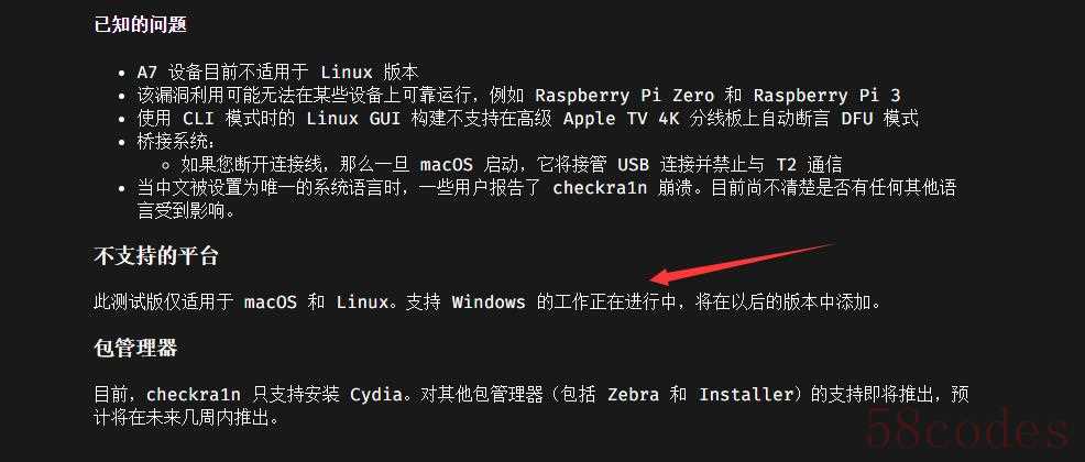 不过!这款 checkra1n 越狱工具目前只支持 macOS 和 Linux 系统,暂时不支持Windows系统,官网有提到。