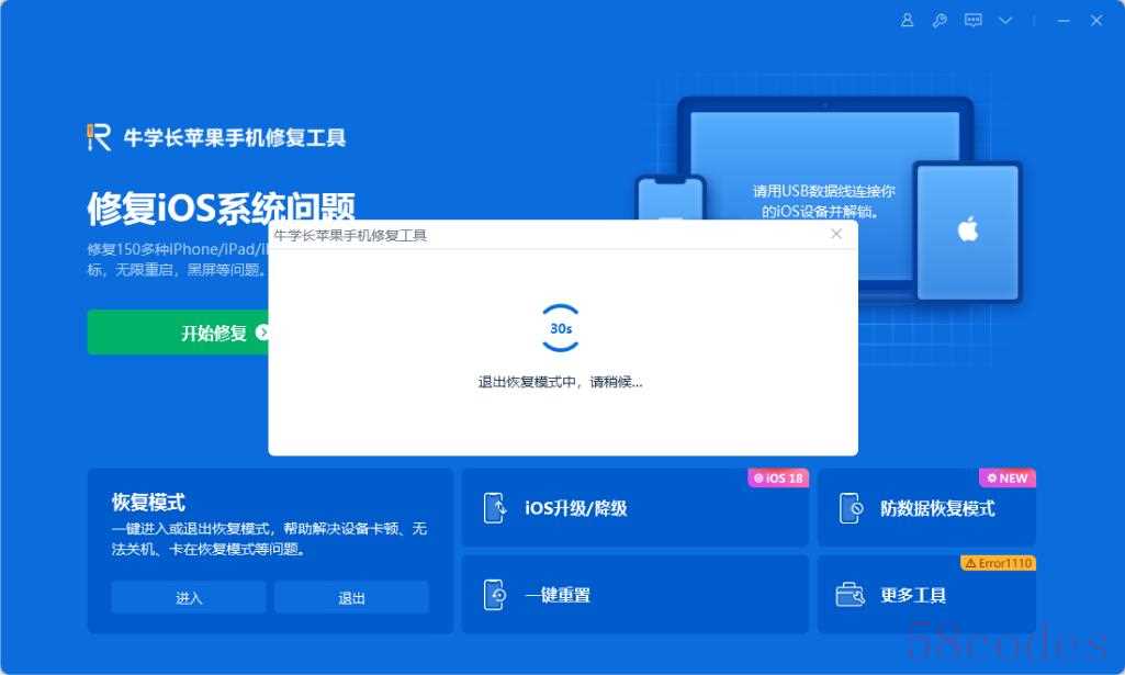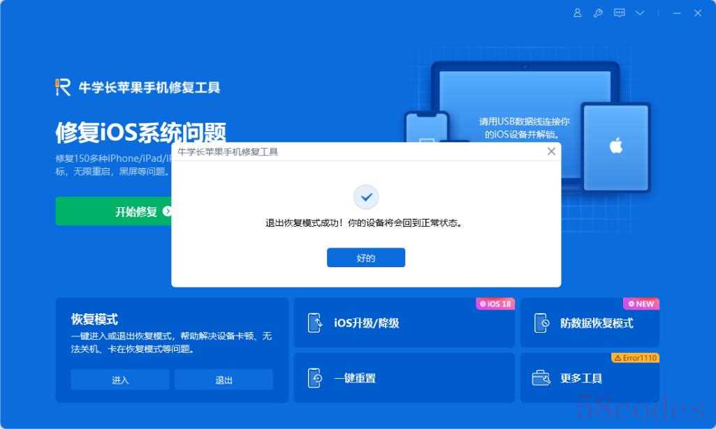 若强制重启无效,可通过专业工具一键退出,如牛学长苹果手机修复工具,操作简单且该功能具有免费次数。
