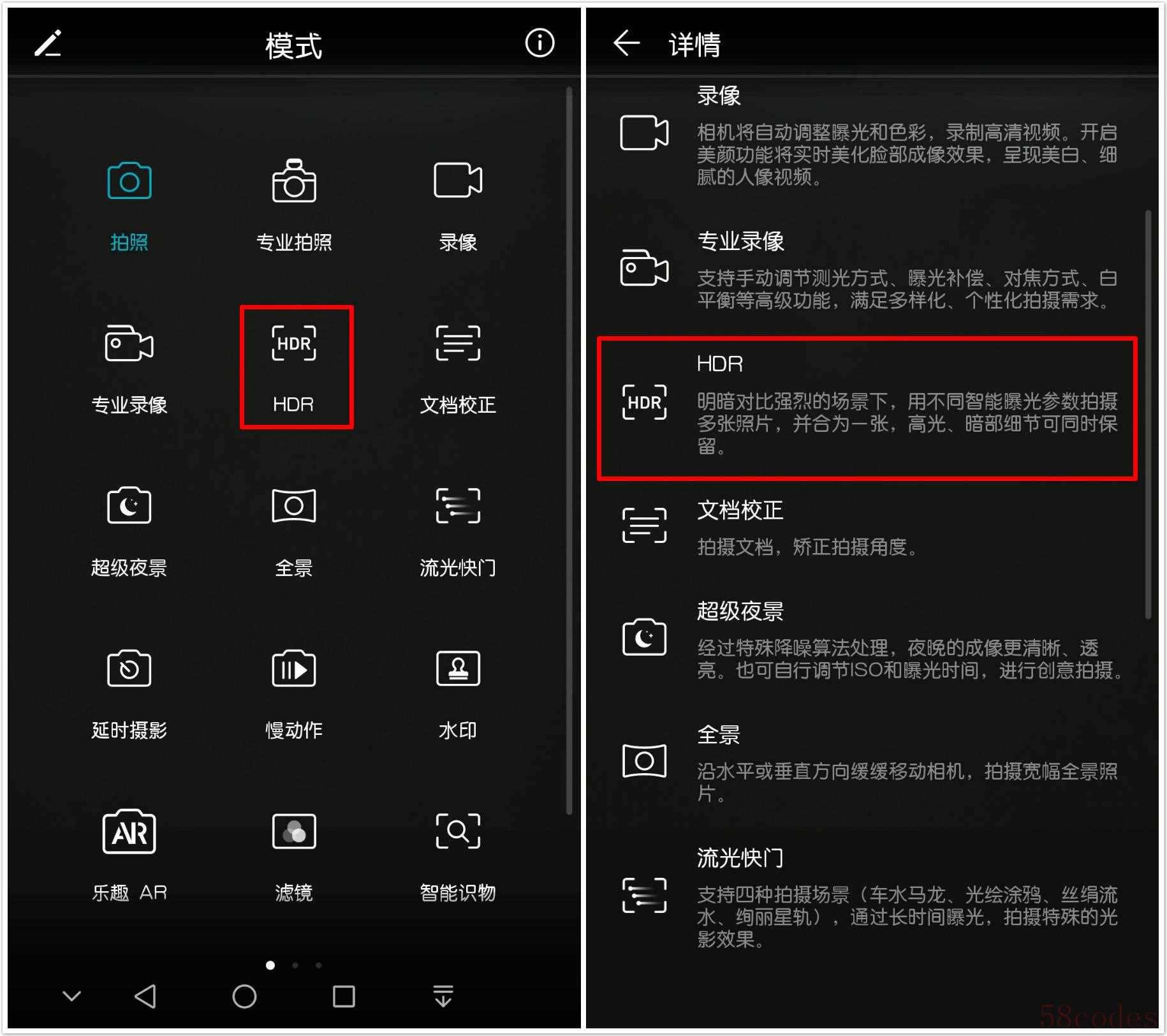 除了专业模式,华为还有其他好用的拍照,比如HDR、慢动作等。