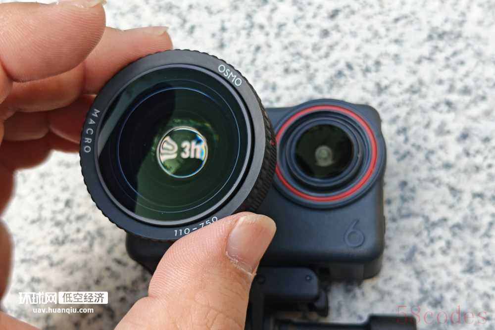 除了微距镜头外,它还能更换上增广镜,能将广角从原来的155度再增加到182度,能拍下更加广阔的风景,挂在胸前拍摄到完整的手臂动作,也能增加现场感。