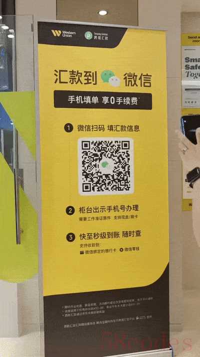 去牛车水 / 珍珠坊等西联智慧门店,微信打开「门店汇款」小程序(提前填好资料),到店扫一扫——确认——付款——看到账。