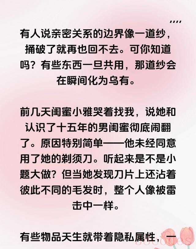 别不承认,两性关系里最微妙也最要命的,就是这种从共用一件私人物品开始的“边界入侵”。