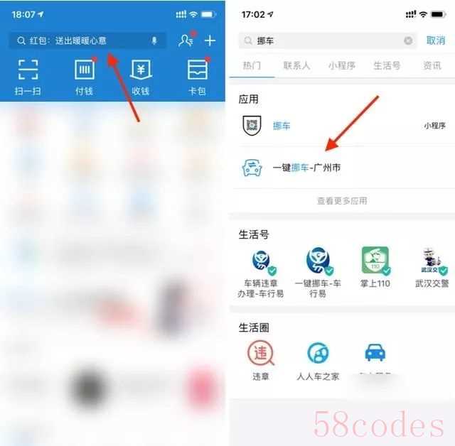 以“挪车”为例,在支付宝APP由于入口隐藏很深,很难找到,而通过搜索则快速找到,如下图所示。