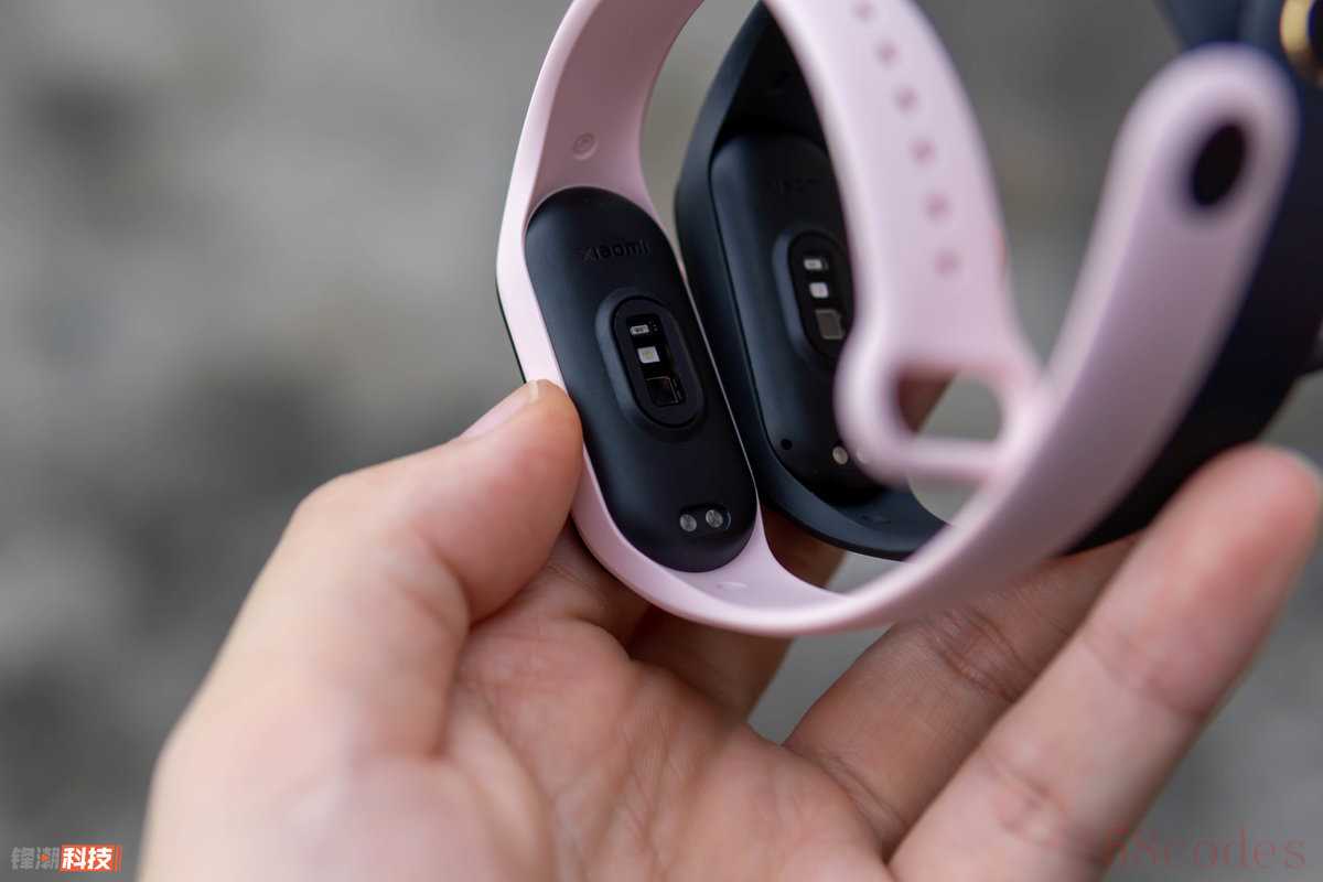 再来谈谈小米手环 7 在细节上面的一些小改动吧。它也小改了延续了多年的腕带设计,在内侧做了“内凹”的曲线,成为了“导汗槽”,能在一定程度上减少对手腕的闷热感。