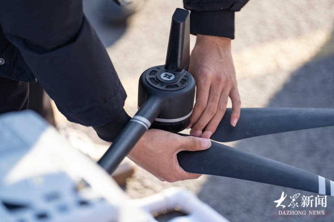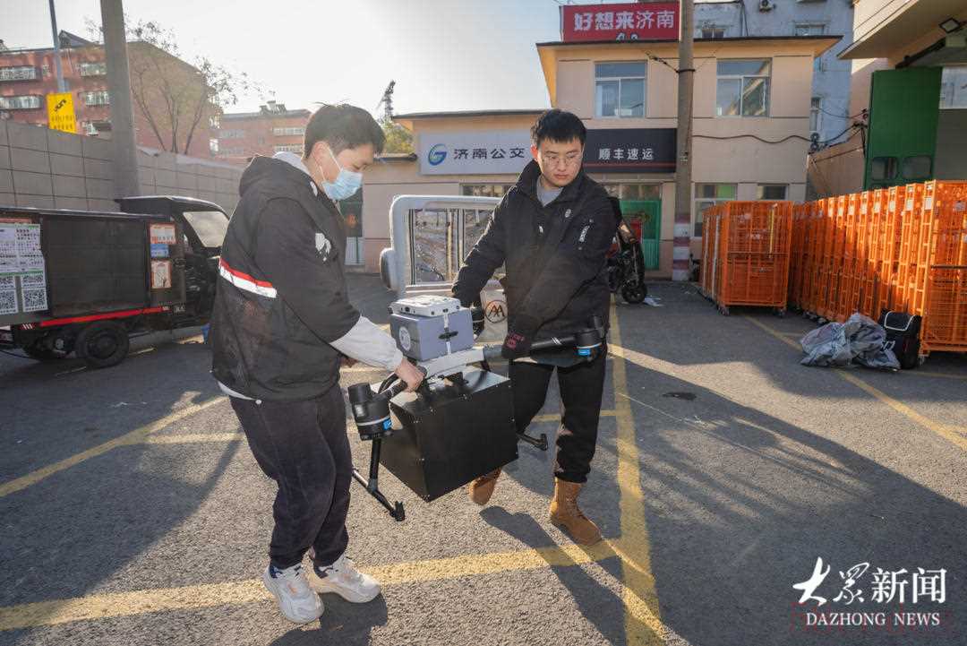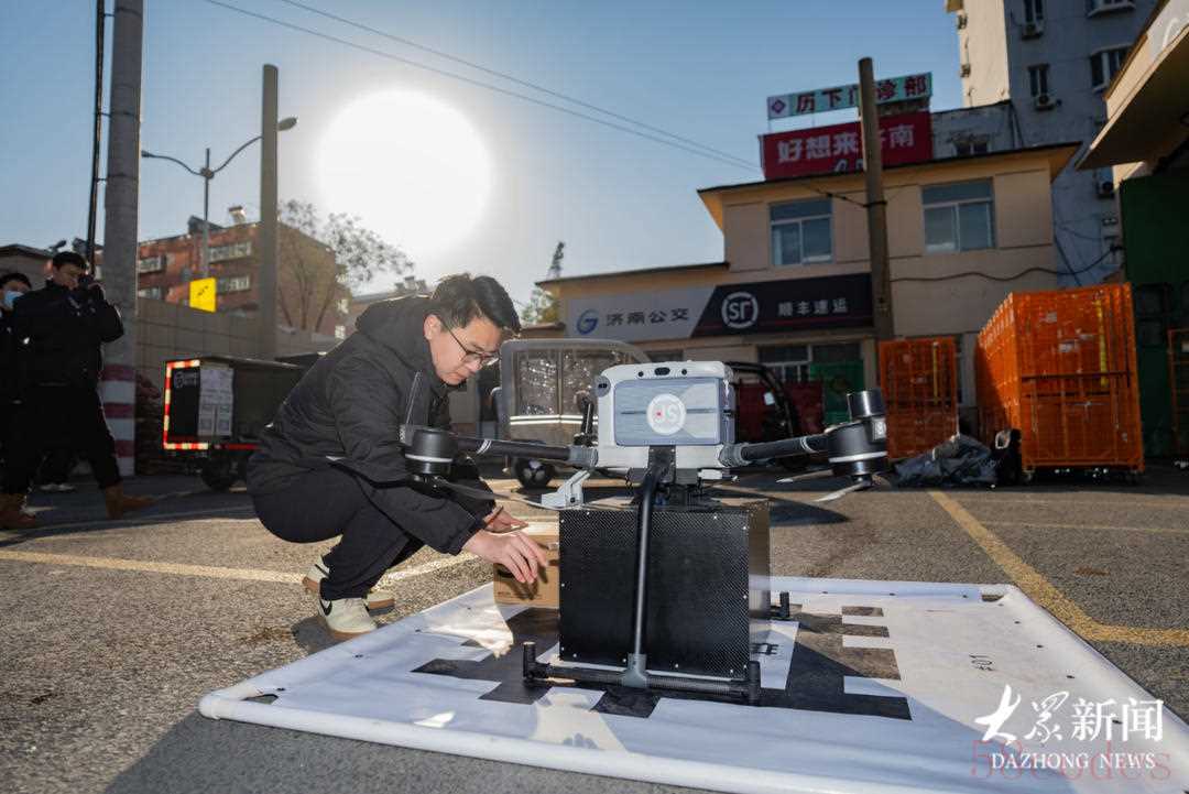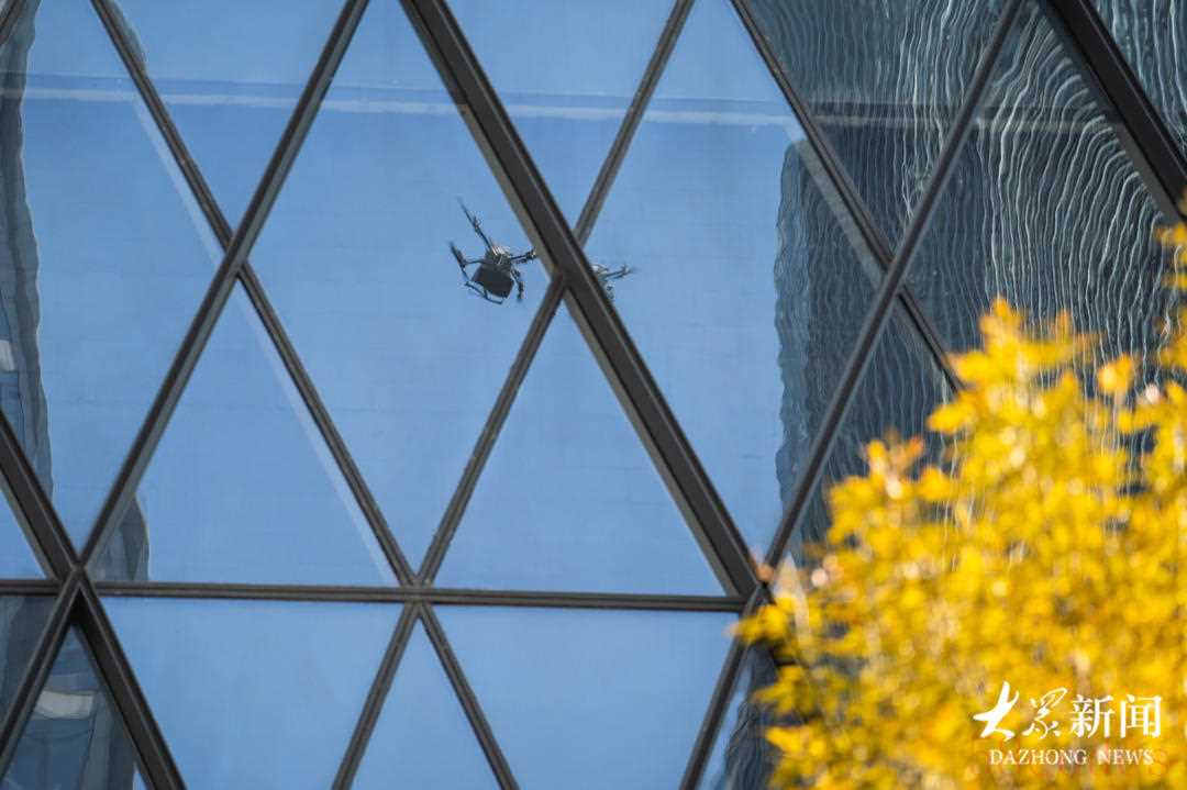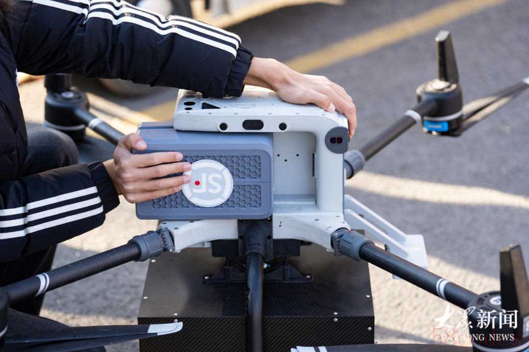 12月5日上午,一架载重10kg级的无人机,在济南中央商务区(CBD)密集的建筑群中起飞。它沿着既定航线,仅用时7分钟就跨越了地面通常需要行驶15分钟的2.2公里路程,稳稳降落在中国人寿大厦南楼的停机坪上。