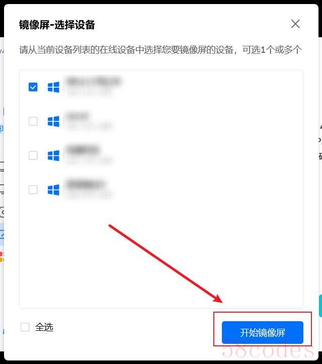 选择需要投屏镜像的被控设备,可选择一个或多个,点击“投屏或开始镜像屏”。