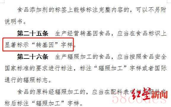 1. "转基因食品显著标示 (Significant Labeling for Genetically Modified Foods):"