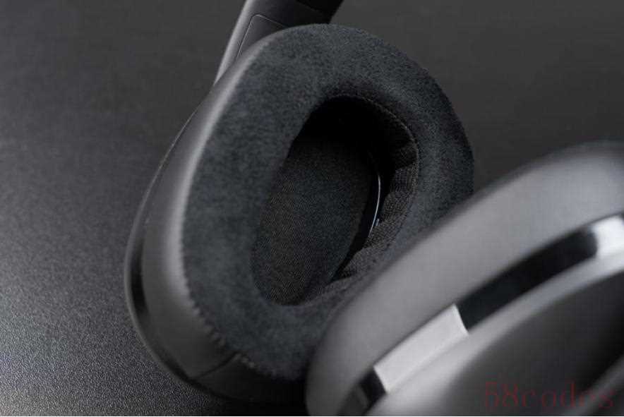 两个耳罩位置不是一般耳机的垂直配置,而是有一定的斜度,很好符合了人耳位置曲线,能更好贴合耳部,甚至耳罩内挖孔也不是常见的原型、椭圆形,而是一个半月牙形耳朵状,极度符合人体工学——这使得耳罩是真正“罩”在耳区周围,而不像某些耳机实际上是“挂”在耳朵上的“罩”。而斜向四向调节耳罩+植绒织物接触面+记忆海绵+内凹头梁,让眼镜用户也能取得紧密不紧绷的舒适佩戴体验。