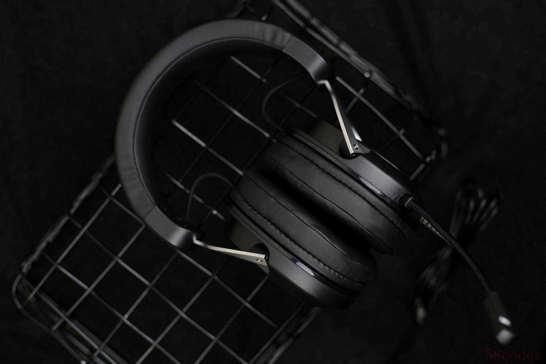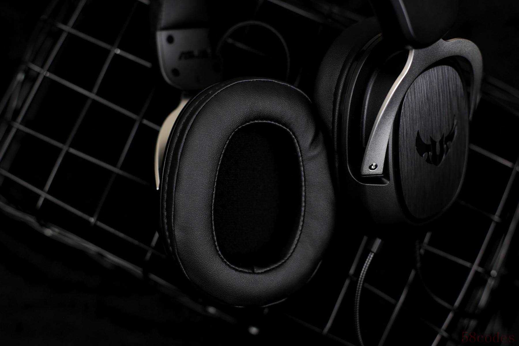 TUF 飞行堡垒 H3 电竞耳机采用了黑灰配色,PC、金属、皮质三种材质有机结合在一起,质感十分出色 。