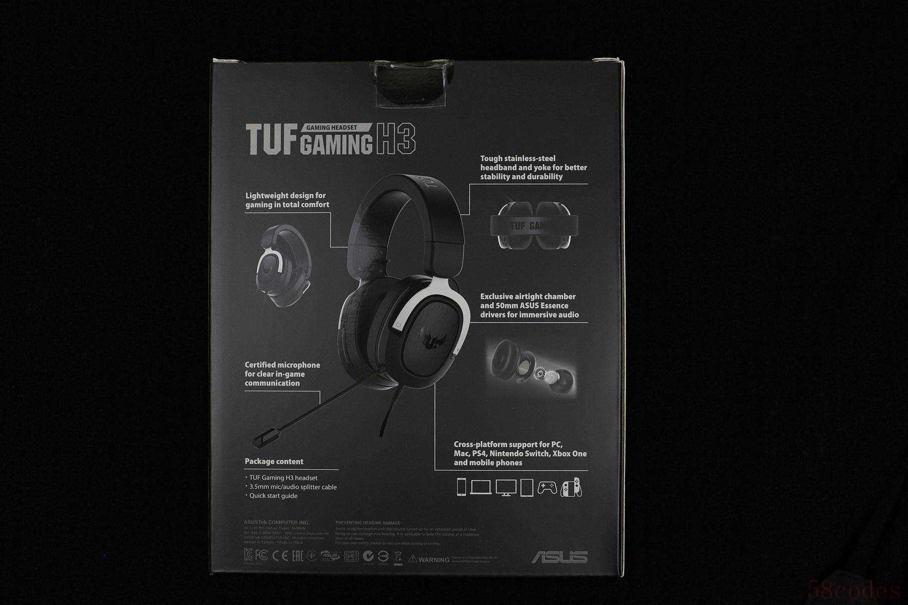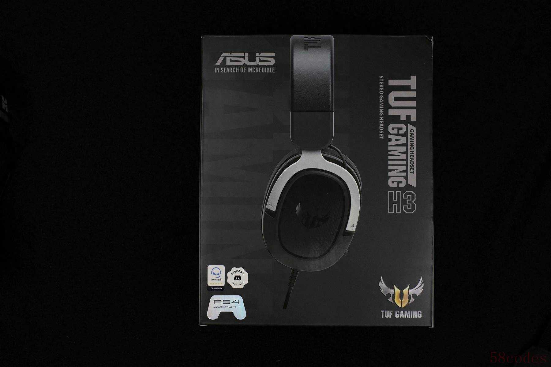 TUF GAMING(飞行堡垒)是ASUS(华硕)的一个电竞系列,之前玩过这个系列的K7键盘,第一印象还是不错的。H3电竞耳机的包装采用了黑灰配色,比较符合其电竞定位,中间为H3的侧视图,从外形来看,H3的尺寸算不上大。