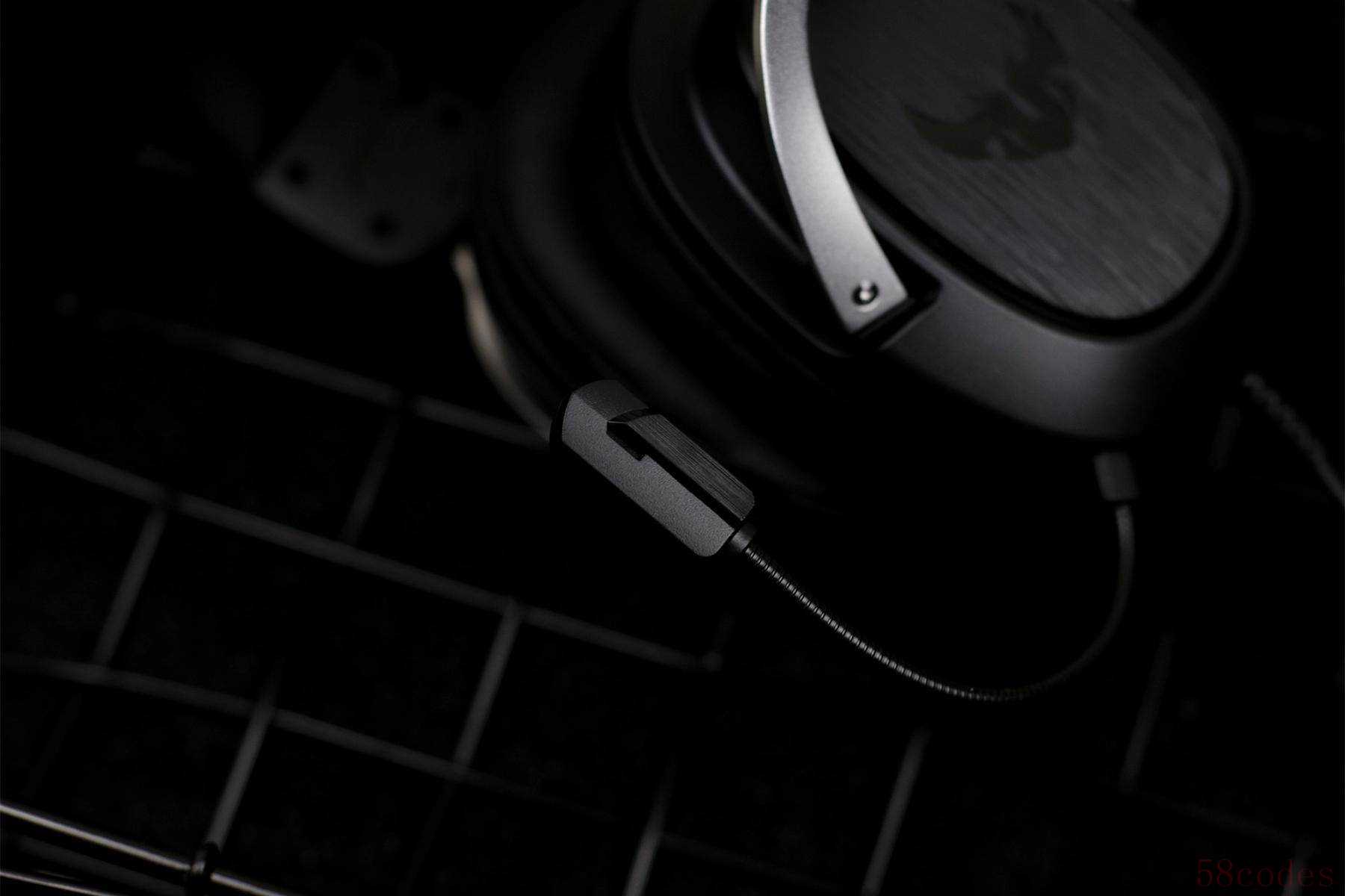 TUF 飞行堡垒H3电竞耳机 的耳麦背面设计与耳罩面板保持了高度的一致,细节部分的拉丝工艺也得到了保留。