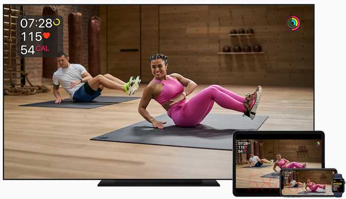 Apple Watch搭配Mac、iPad或者iPhone,就可以随时进行Fitness+课程