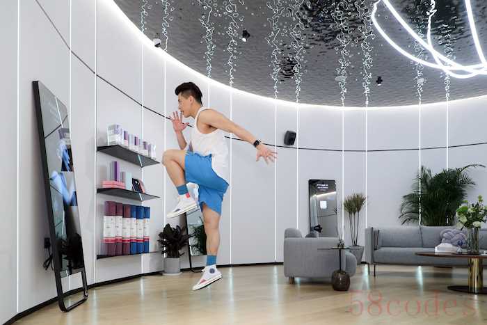 FITURE采用了4K、60帧的高清屏幕,并且UI设计极其克制和简约,其在熄屏状态下是一面外形时尚的穿衣镜,可以选择挂墙或落地摆放;而在亮屏状态下,它也不会变成一个“大电视”,而是用尽可能低对比度但高分辨率的画面,让你能在看清屏幕内容的前提下也能清晰看到镜子里自己的动作,同时能将注意力最大可能地集中在教练身上。在训练过程中,FITURE会随时提醒你的动作哪里不到位,或者你哪些动作做得不错,就像一个真人教练所做的那样。如果是通过FITURE参加明星教练的直播授课,那么教练也能通过系统即时得知你的动作完成状况,或者看到你的心跳、呼吸等身体状态信息,来及时进行更加个性化的指导。