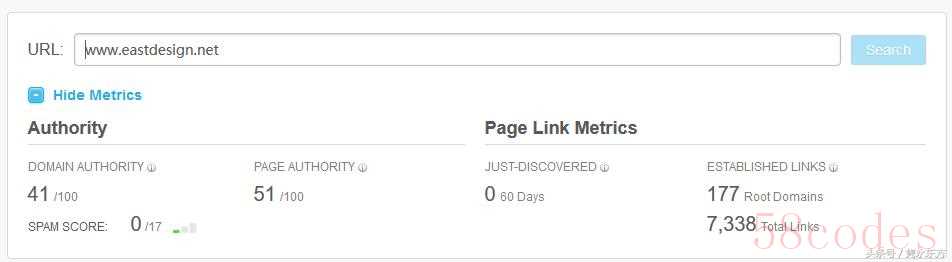 3,如果不是新域名,一定记得查询该域名的PA/DA值,看看是否有被搜索引擎惩罚过:
