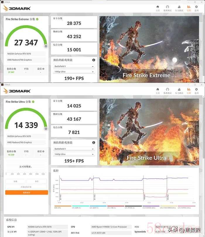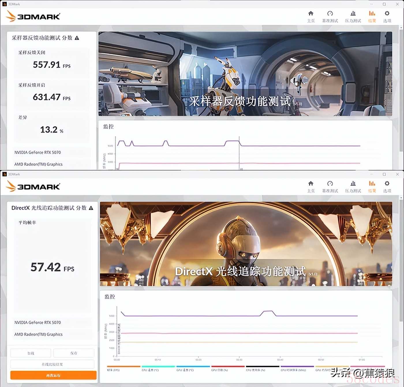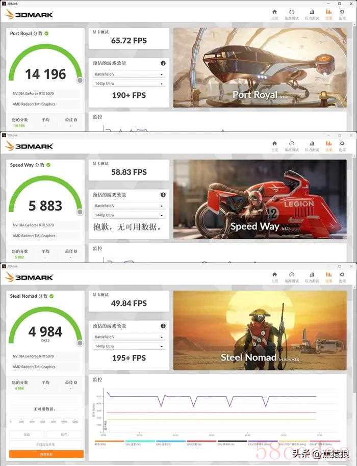 索泰 GEFORCE RTX 5070 12GB XGAMING OC BLACK 3DMARK 各种模式下的跑分。