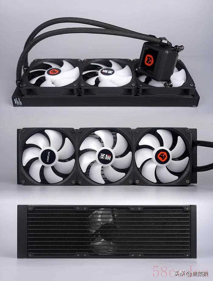 水冷配备了三个菊链式 ARGB 高性能风扇,支持 Aura Sync 灯光同步。风扇具体规格:PWM 5000~2500±10%RPM 转速、最大 77.22CFM 风量,最大 5.48mmH2O 风压。