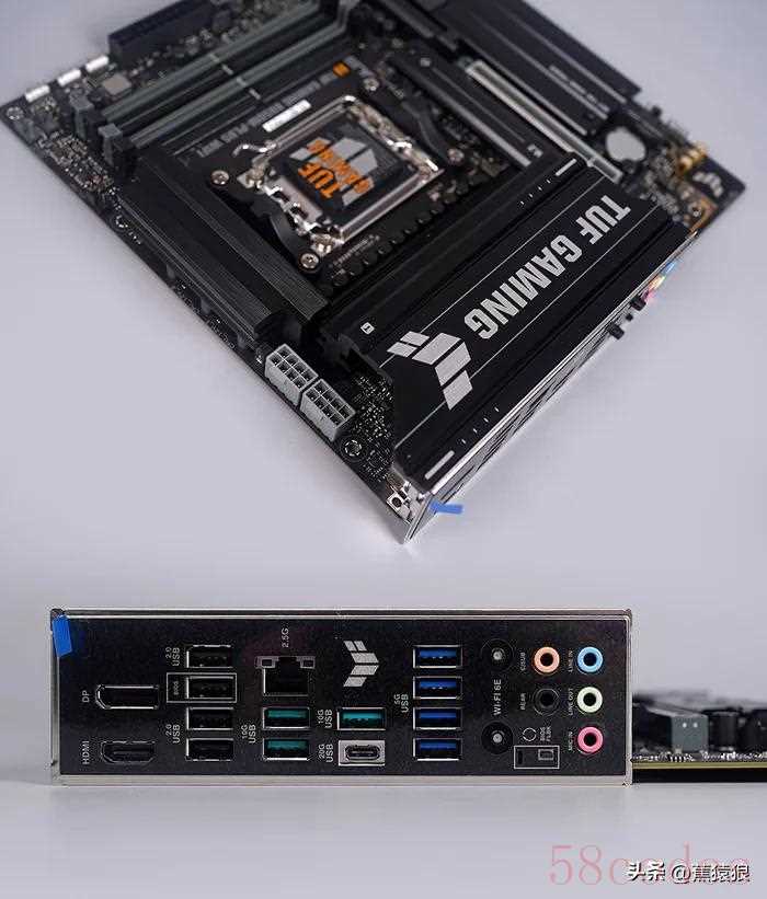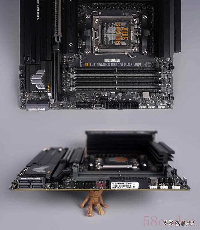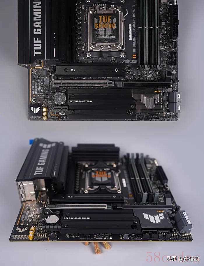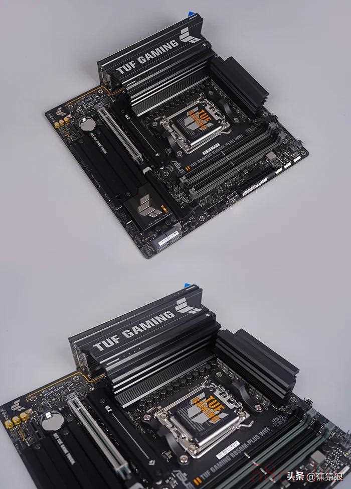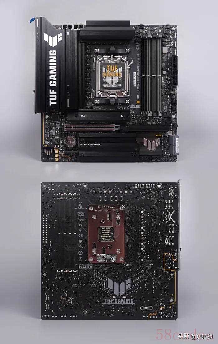 主板选用的是华硕 TUF GAMING B850M-PLUS WIFI 重炮手主板。主板外观采用硬朗的军事风格设计、主打稳定可靠的规格用料,定位于主流电竞游戏玩家,具有多项电竞功能设计,给到玩家最优的游戏体验。