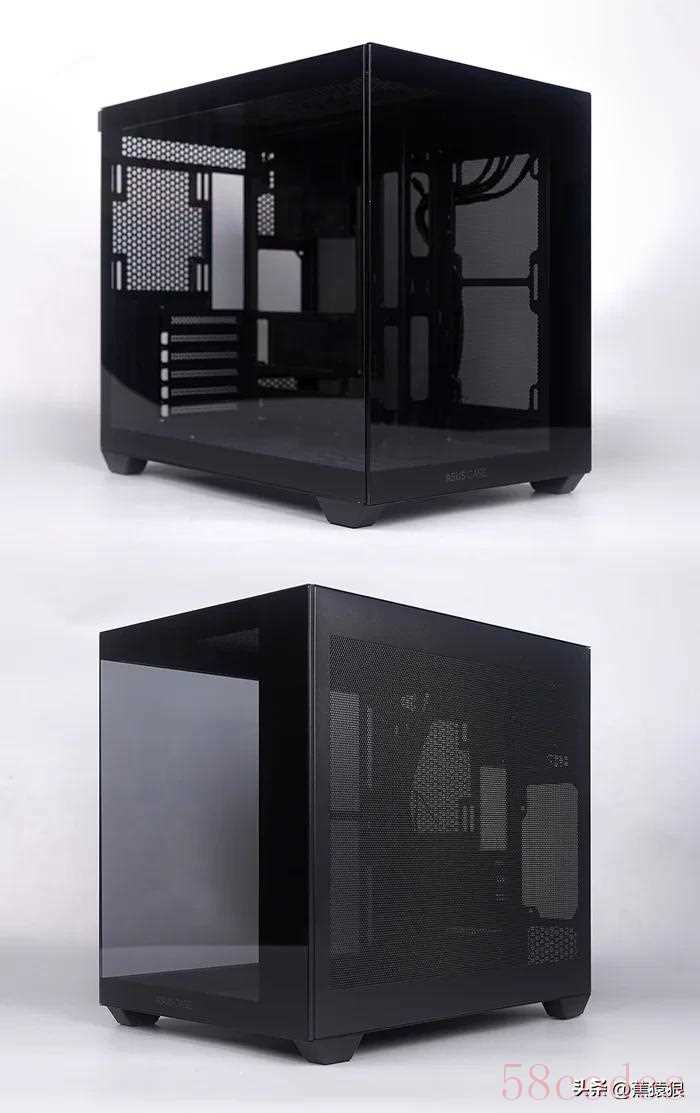 华硕 “ 海王星 ” 机箱外观采用简约方正的造型,采用无立柱全视海景房设计,具备有通透的硬件展示效果。采用标准 ATX 规格,具体尺寸为 435mm×285mm×390mm (长宽高),体积仅为 48L 左右,尺寸并不是很大!即具备不俗的硬件兼容性。