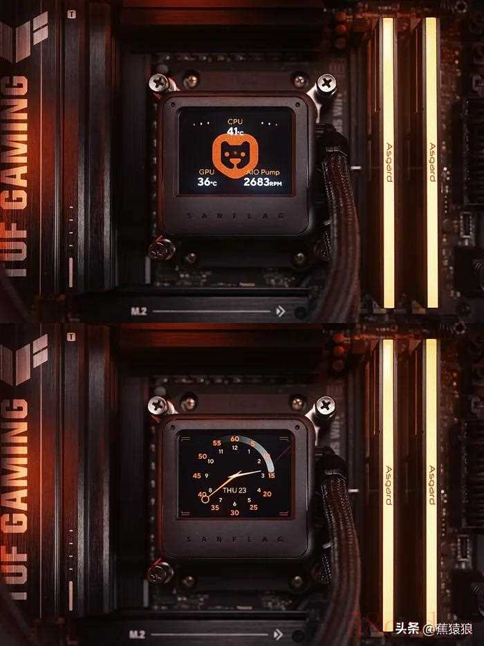 散热器选用的是华硕「 圣旗」圣狮 360 ARGB LCD 一体式水冷。性价比蛮不错的水冷,具备不错的散热与静音表现,还有可以自定义的 LCD 屏幕。