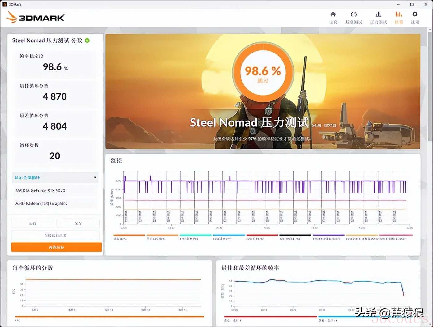 3DMARK Stell Normad 压力测试,通过率 98.6%。