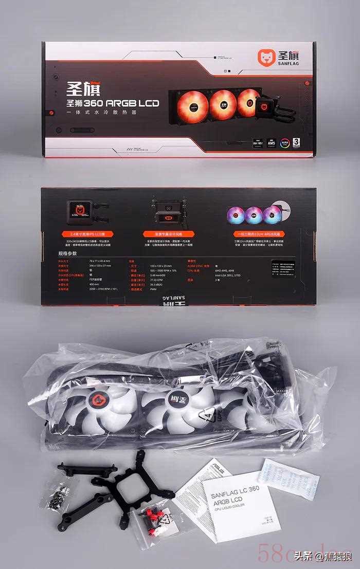 华硕「 圣旗」圣狮 360 ARGB LCD 一体式水冷,包装正面配有散热本体图案展示,包装背面图文标注产品卖点,还有规格参数。扣具支持 Intel(LGA1851/1700)和 AMD(AM5/AM4),官方提供三年的质保时间。