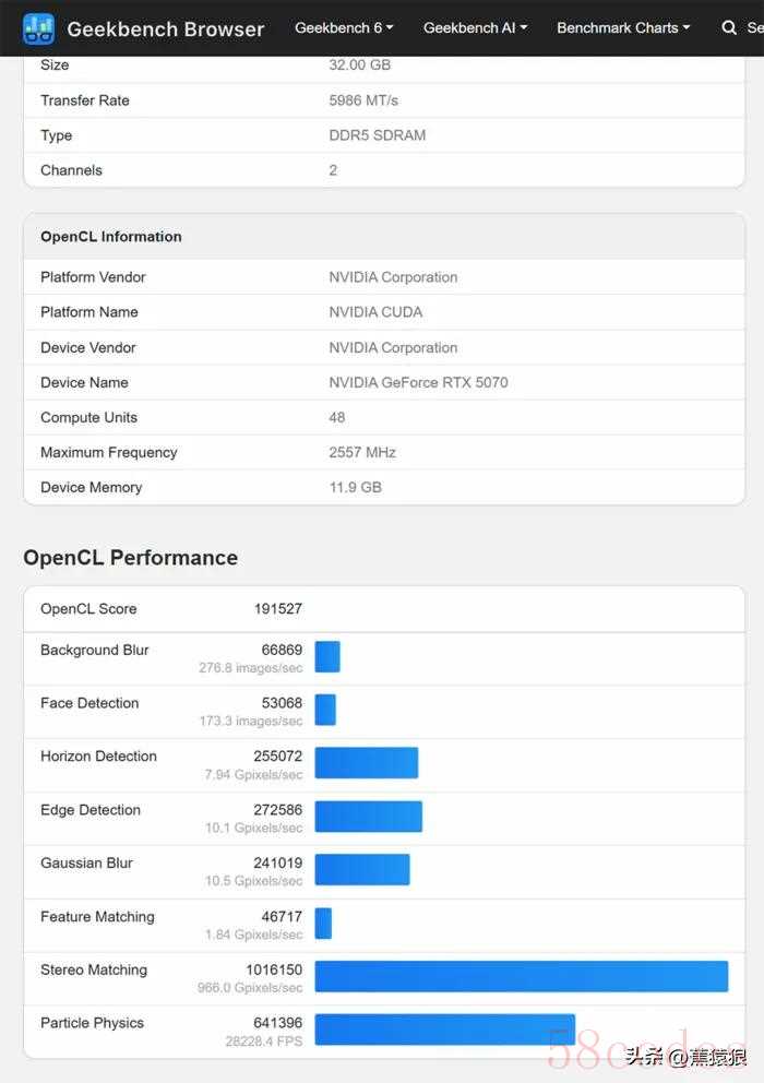 GEEKBENCH 测试 OPENCL 得分 191527。