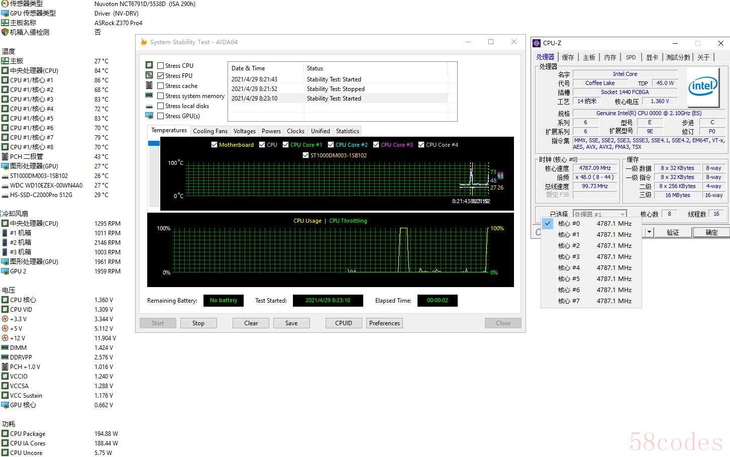 酷冷240水冷,超4.8跑fpu,温度85有点高