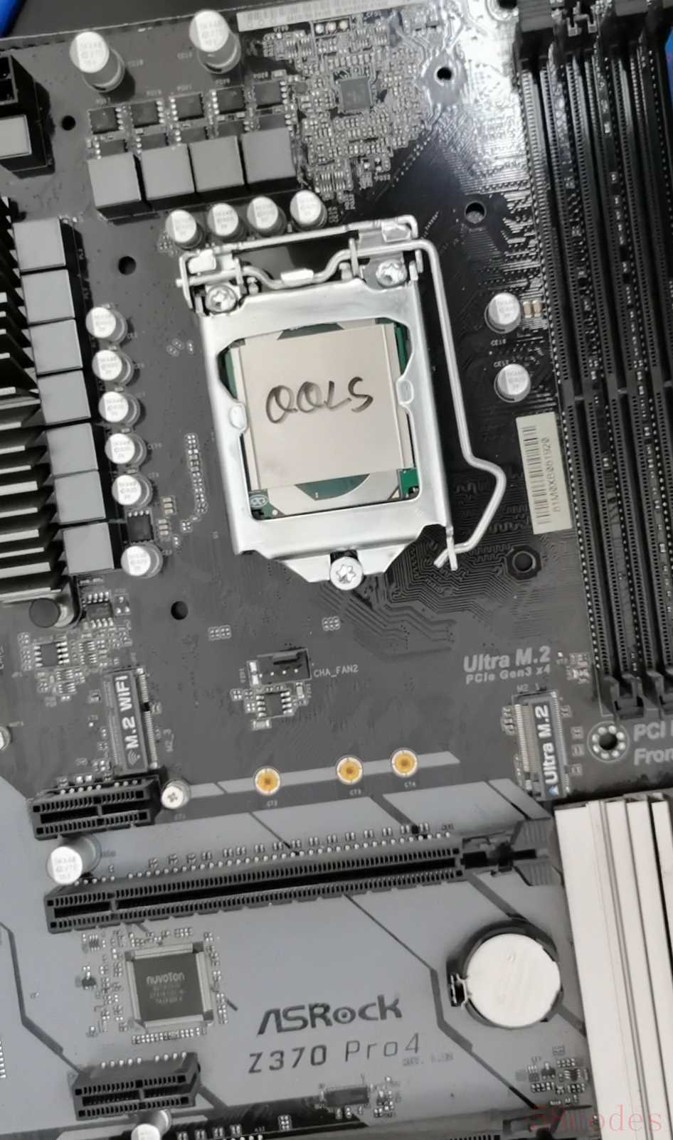 主板是之前自用的华擎z370 pro4丐版魔改而来,功耗墙和电流墙设置到最大,这主板目前咸鱼300元左右,也可以购买150元左右的z170主板,性价比更高。
